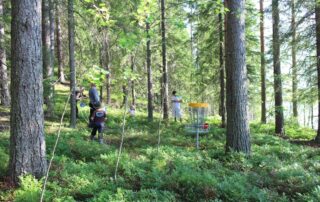 Frisbee golf is also known as liittiekkogolf and the idea of the game is the same as in traditional golf: the course should be cleared with as few throws as possible. The player with the lowest score wins the game.