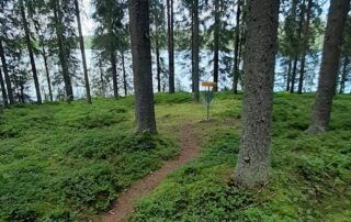 You can play frisbee golf in the immediate vicinity of the Huvilaranta rental cottages. The frisbee golf course has 9 holes and runs through a mossy forest, along a jogging path in a lake landscape.