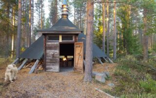 The area around the hut is flat and the hut is also wheelchair accessible. Firewood and a coffee pot are included. About 300 meters before the hut, there is a well next to the road where you can get water.