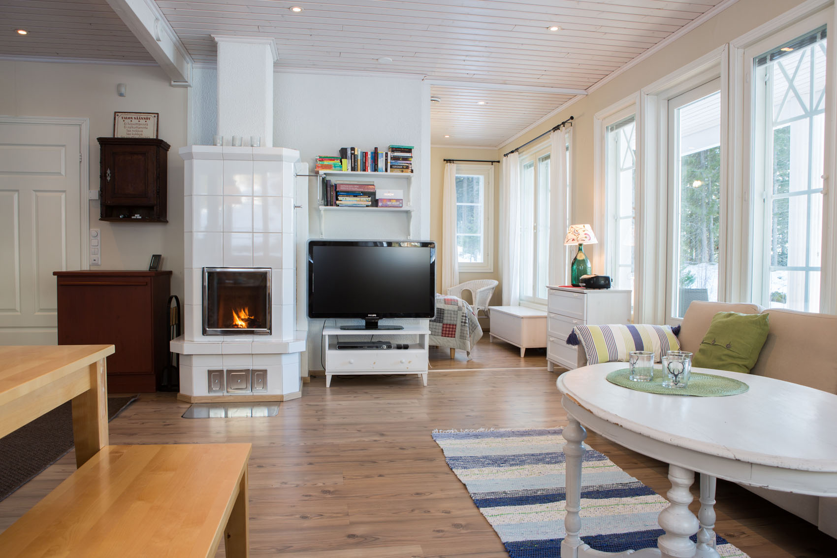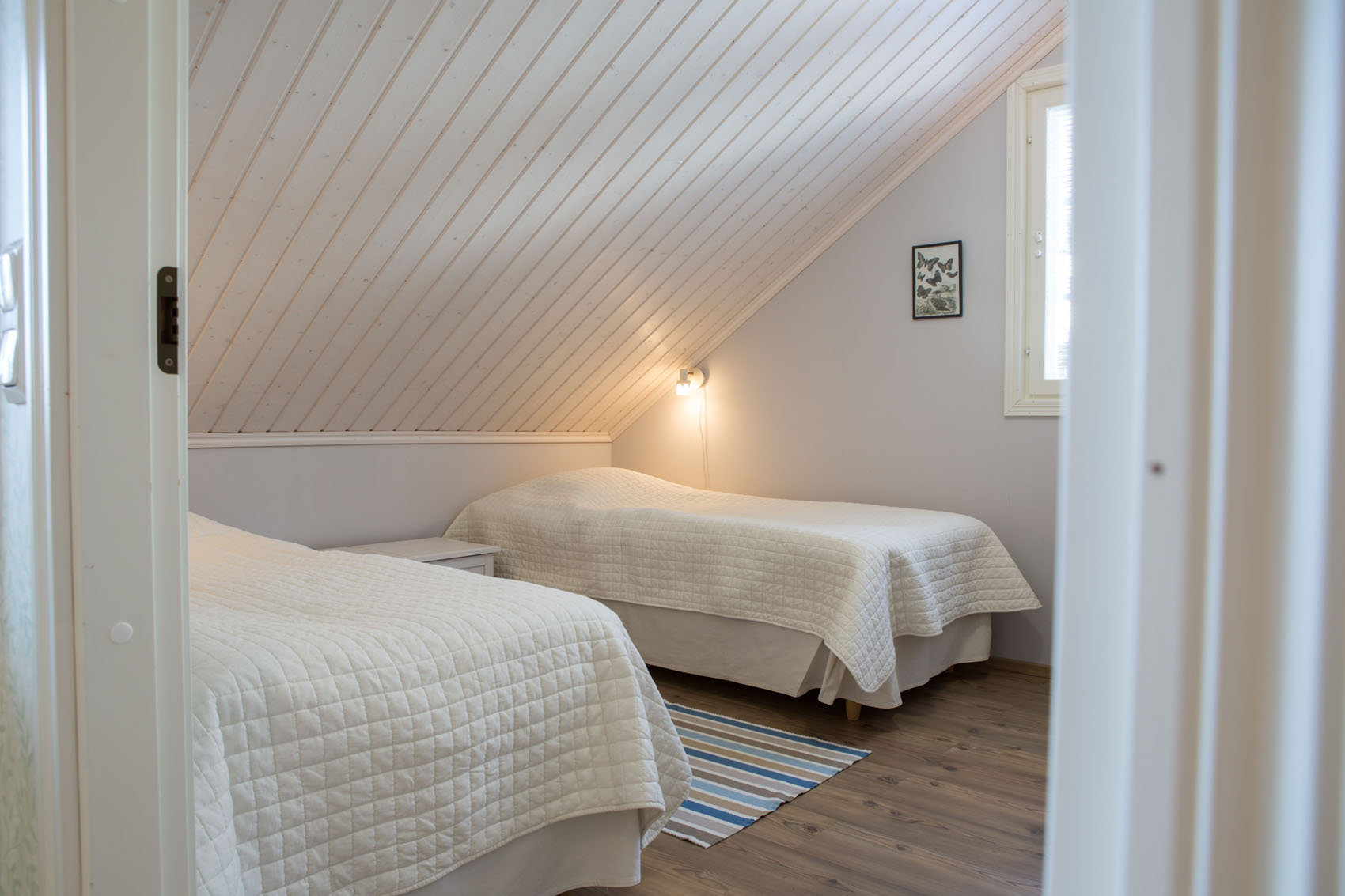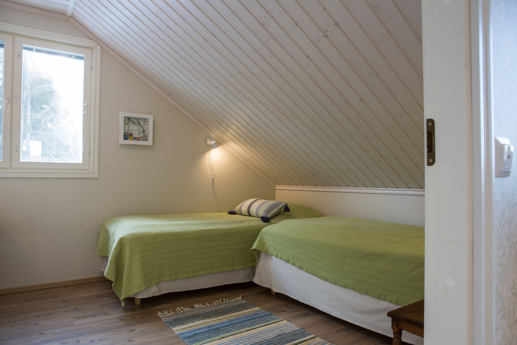 Villa Akuliina is located on a particularly beautiful plot with a rocky wall on the side of the evening sun. There is also a separate beach sauna near Villa Akuliina’s shallow sandy beach. The frisbee golf course starts about a hundred meters away. A rowing boat is available for free use.