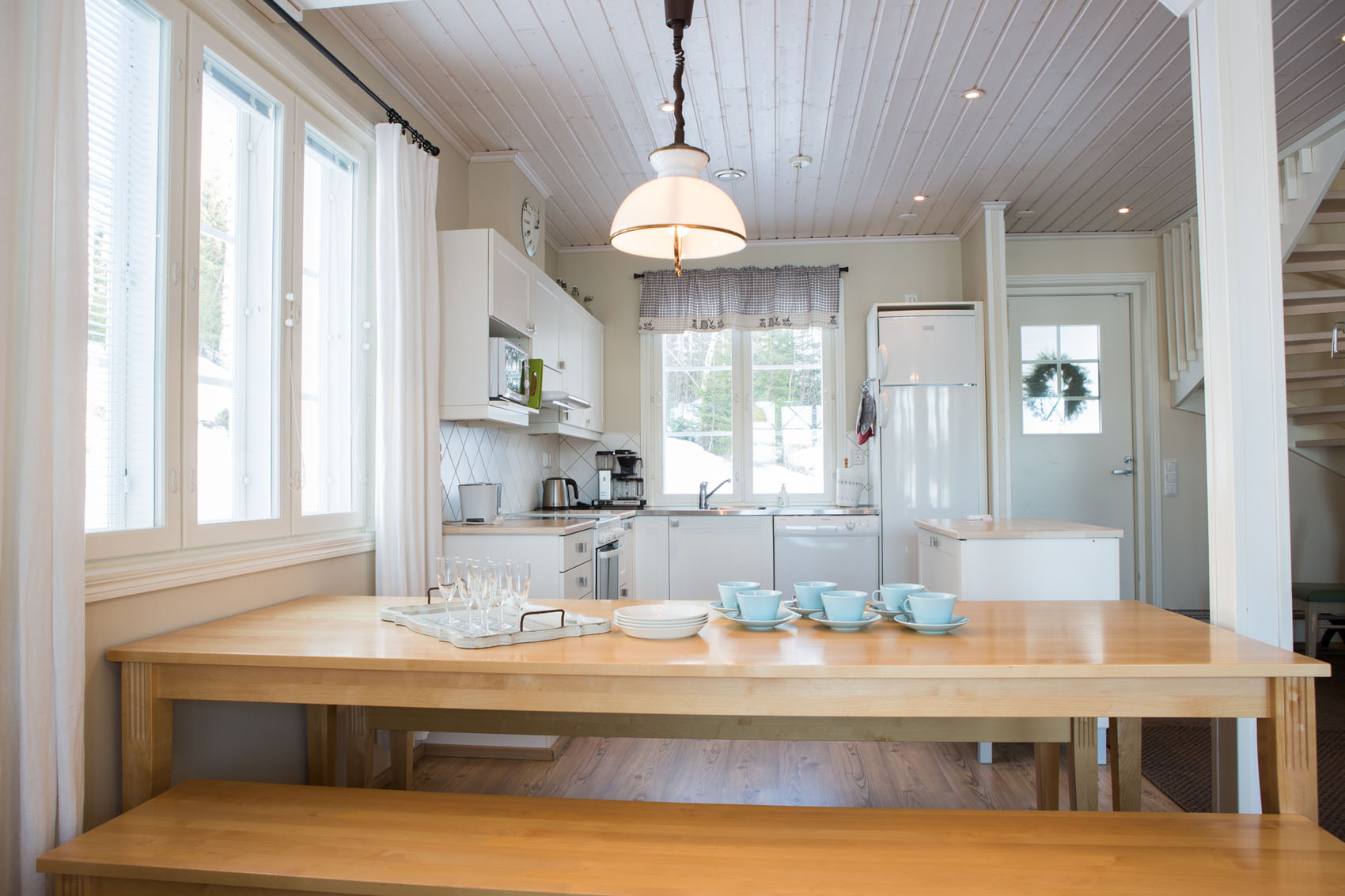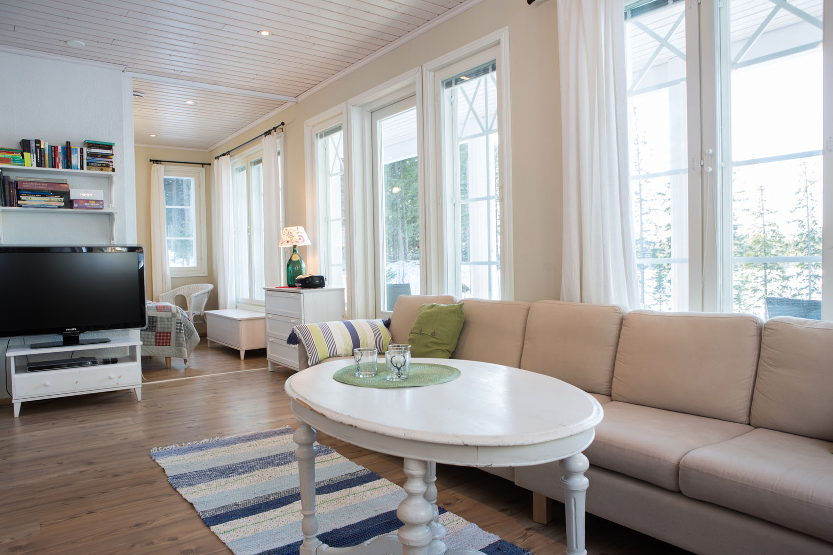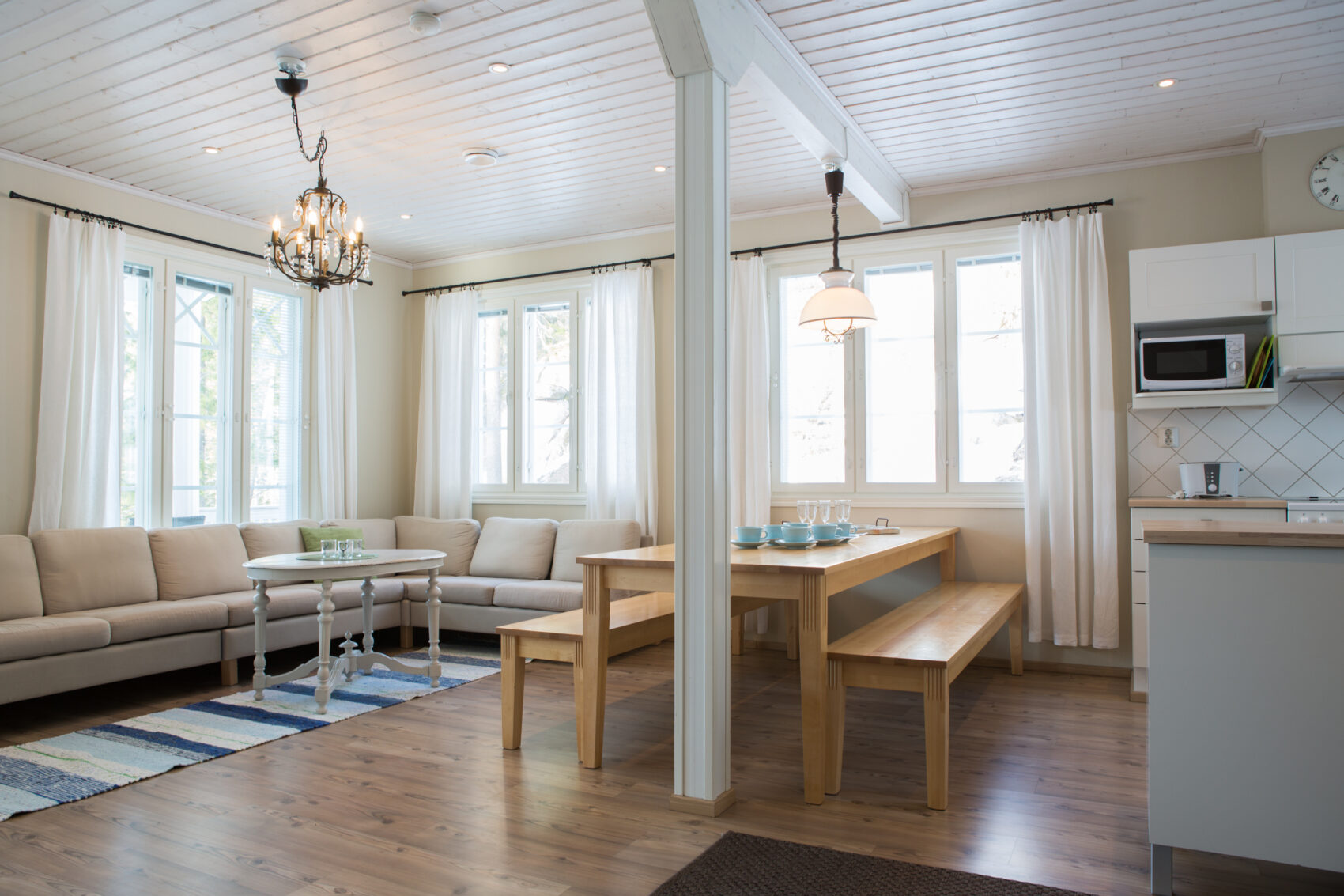 Villa Akuliina is located on a particularly beautiful plot with a rocky wall on the side of the evening sun. There is also a separate beach sauna near Villa Akuliina’s shallow sandy beach. The frisbee golf course starts about a hundred meters away. A rowing boat is available for free use.